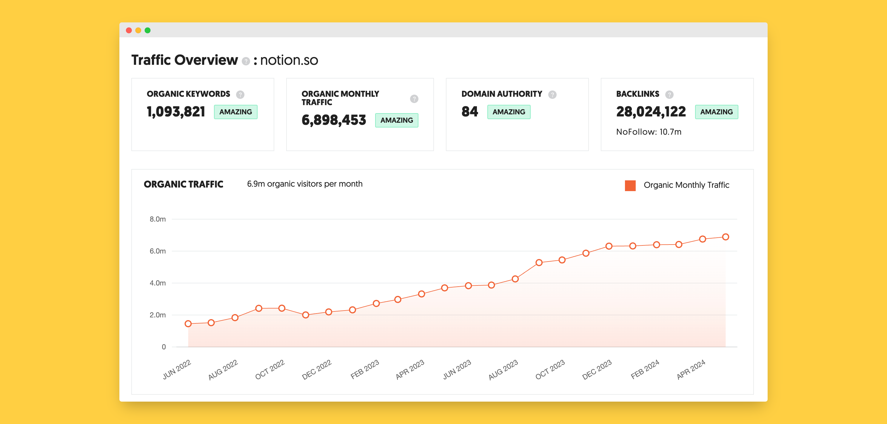 Notion’s website traffic grew from 1.5 million monthly visits in June 2022 to 6.9 million in June 2024 - over 4x growth while spending relatively little on paid advertising.